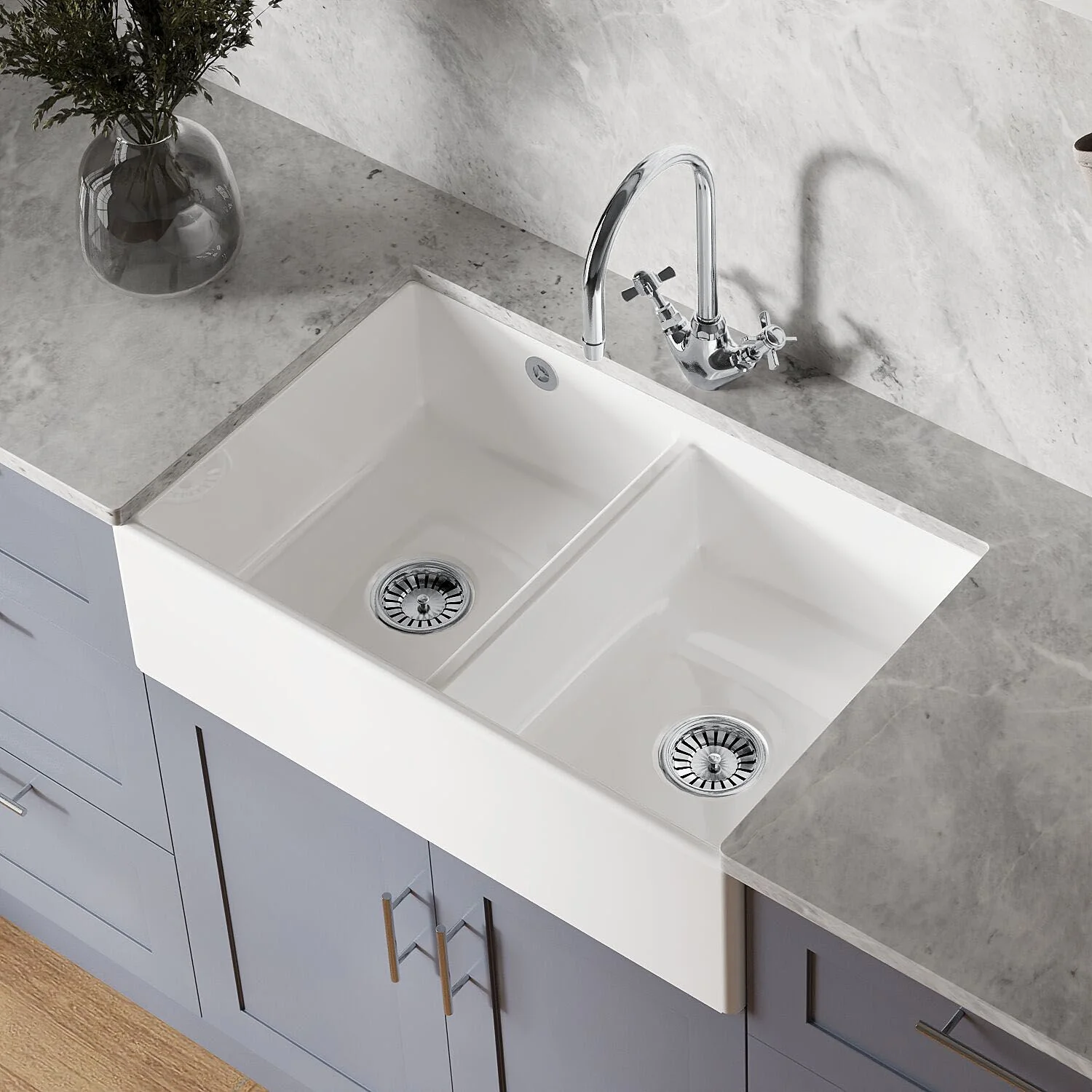 Designed for traditional and country-style kitchens, this double bowl butler sink works beautifully in period properties and contemporary homes seeking authentic character. The generous proportions suit family kitchens, open-plan spaces, and homes where the kitchen serves as a true gathering place.