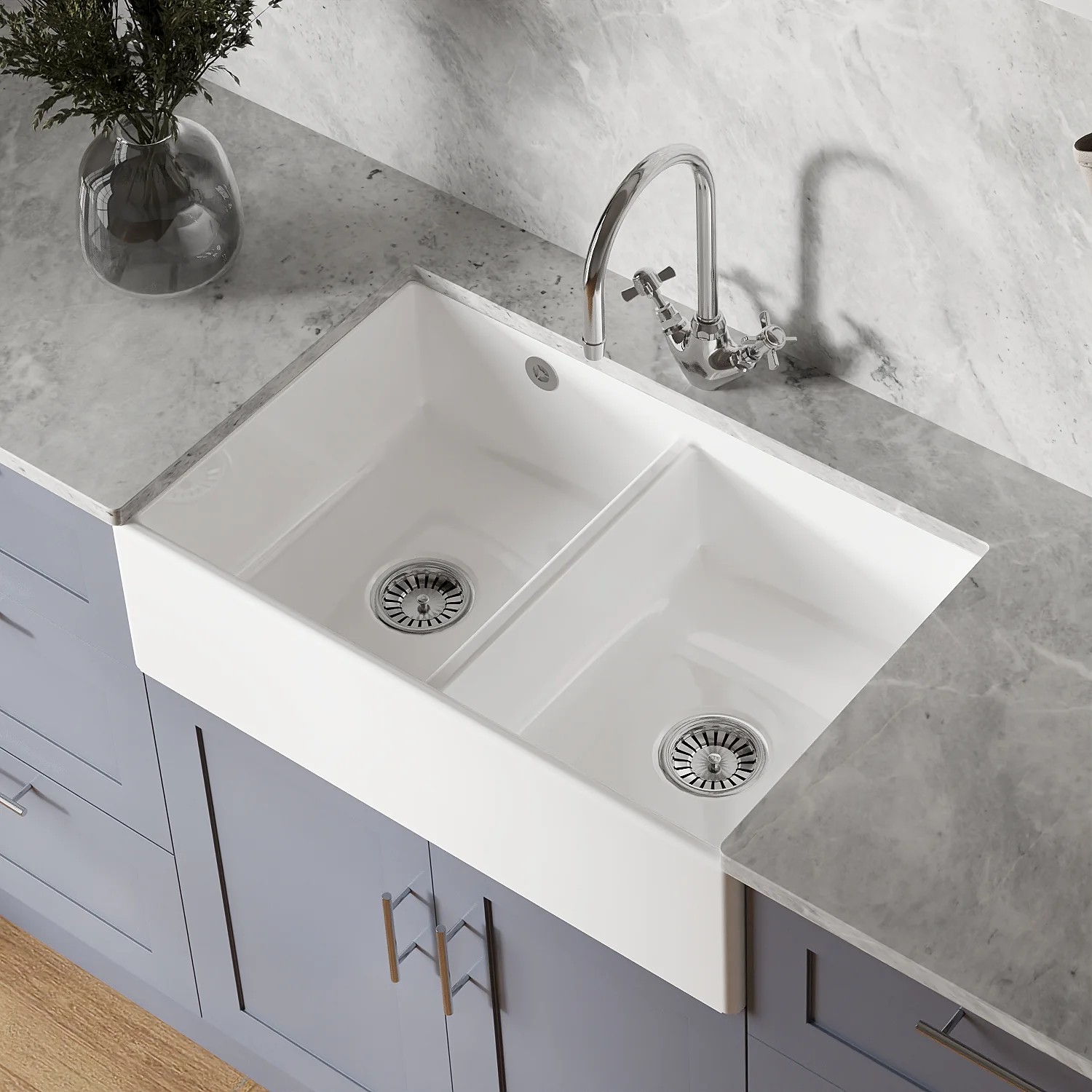 Designed for traditional kitchens, this butler sink works beautifully in both period properties and newer homes seeking authentic character. The white finish pairs effortlessly with painted kitchen units, wooden worktops, and natural materials, while the classic proportions suit everything from compact galley kitchens to large, open-plan family spaces.