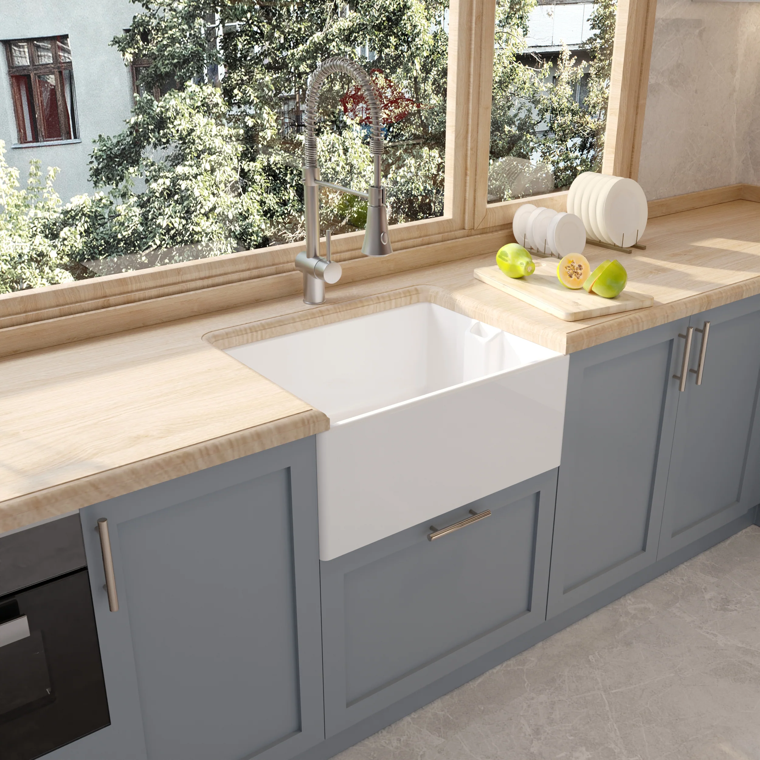 Perfect for kitchens honouring British heritage design, this Belfast sink works beautifully in period property renovations, cottage-style schemes with painted Shaker units, or contemporary kitchens seeking authentic character through traditional materials. The slightly more compact width suits spaces where a full-size double butler might overwhelm, whilst delivering all the depth and presence the style is known for.